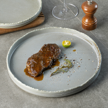 Đĩa Sứ Tròn Màu Xám 7.5/9.5/12 Inch Tùy Chỉnh Logo Cổ Điển Mới Nhất Nhà Hàng Khách Sạn Đĩa Ăn Tối Bằng Gốm