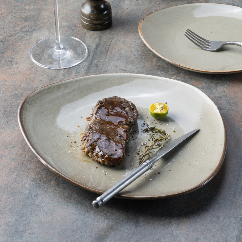 Sản Phẩm Mới Bền Yayu Đĩa Màu Xám Nhà Hàng Gốm Sứ Phương Tây Hình Tam Giác Phẳng Sứ Không Đều
