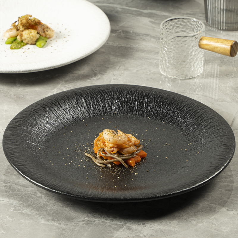 Yayu 2023 Máy Rửa Chén Và Lò Vi Sóng An Toàn Gốm Nhà Sản Xuất Độc Đáo Matte Màu Đen Trắng Món Tráng Miệng Thực Phẩm Tấm Cho Nhà Hàng